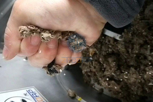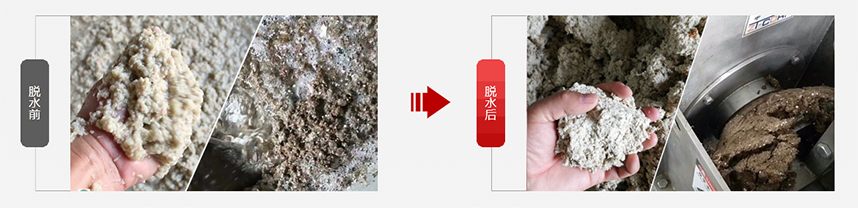 紙漿廢渣擠壓脫水前后對比: